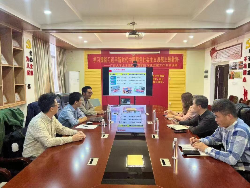 2023年11月30日至12月1日,william威廉中文官网教师第一党支部书记周斌、宣传委员程亚慧、教师第二党支部书记王航赞,前往广西大学土木建筑工程公司围绕党建工作进行调研交流。