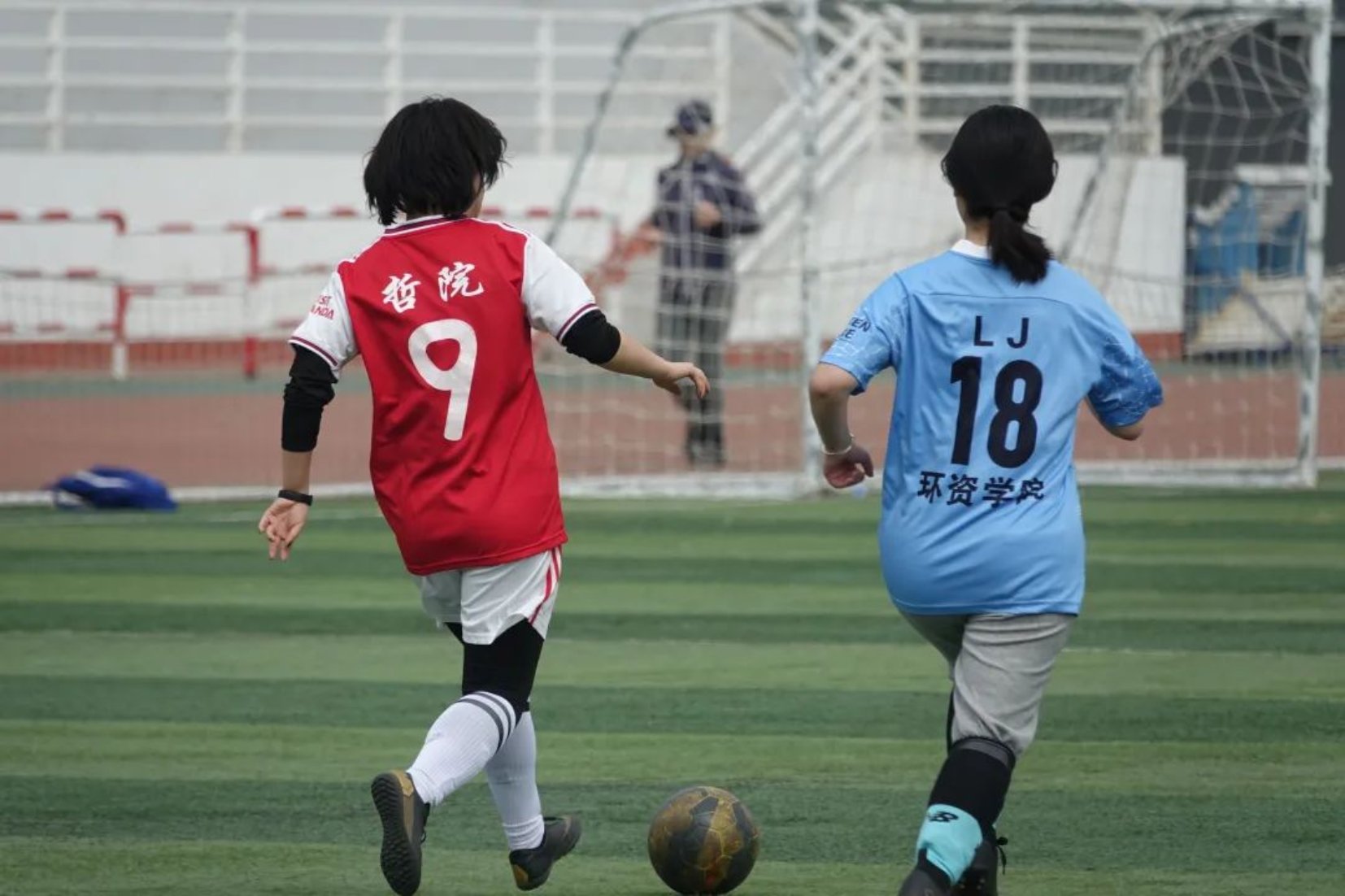 绿茵地上奔跑的身影,健康鲜活的青春气息宛如画卷。哲院女足之间相互配合,即使在赛场上也毫无慌乱,几人之间不断根据对方的行动而互相喊着提醒,及时让队友进攻或进行有效防守。
