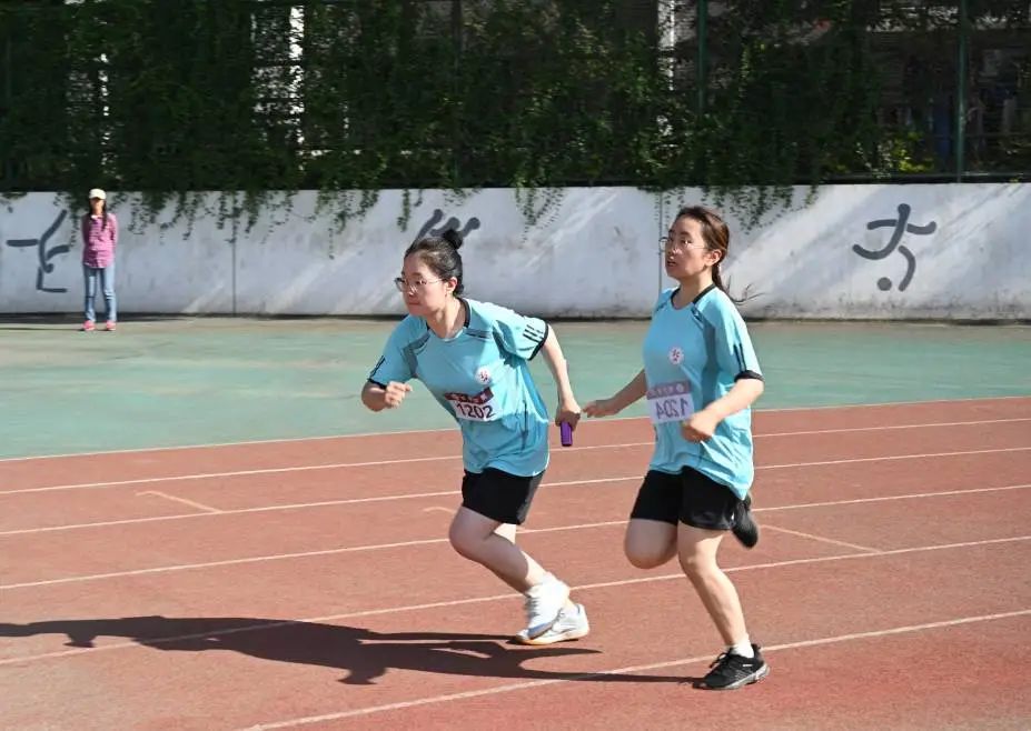 公司运动员们摩拳擦掌,跃跃欲试。枪声一响,他们反应迅速,跃然跑出,奋力摆动双臂,大步奔跑,接力棒在手中紧握,朝队友飞奔而去。观众席上热烈的加油声传递着比赛的紧张与激动。