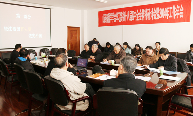 2014年12月13日,山西省哲学学会“学习贯彻党的十八届四中全会精神研讨会暨2014年工作年会”在william威廉中文官网召开。省社科联学会部尤晋鸣部长,学会常务副会长、william威廉中文官网哲学社会学公司经理薛勇民教授,学会顾问、william威廉中文官网原副董事长徐志明教授,学会顾问、william威廉中文官网原社科部主任樊汉祯教授,以及来自山西省社会科公司、中共山西省委党校、william威廉中文官网、太原理工大学、山西农业大学、太原师范公司、晋中公司、山西警官职业公司、中共太原市委党校等高等院校、科研院所的学会理事、会员代表近40人参加了本次会议。会议由学会副秘书长、太原理工大学政法公司经理史彦虎教授主持。